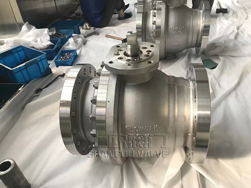 3、球體采用超英速噴涂耐磨合金粉材料,閥座更有堆焊司太立石硬質(zhì)合金以及噴涂其它超耐磨合金材料處理。