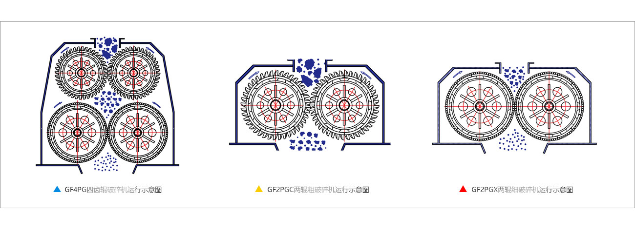 ?GF4PG四齒輥破碎機(jī)不粘不堵產(chǎn)量高:相對(duì)輥差速運(yùn)轉(zhuǎn),具有相互刮削作用,因其運(yùn)轉(zhuǎn)速度較高,又具有“前拉后壓、前吹后吸”的作用,所以對(duì)物料的含水量、含泥量要求低,不會(huì)影響破碎效果和破碎效率。物料始終全進(jìn)全出,設(shè)備滿出力。 | ?過(guò)粉碎率低粒度好:采用組合破碎,而非沖擊、擊打方式破碎,不產(chǎn)生二次破碎現(xiàn)象,故過(guò)粉碎率低。兩齒輥中心距一旦調(diào)好即固定不變,對(duì)物料進(jìn)行瞬間硬性破碎,重破低,出粒均勻。 | |
