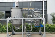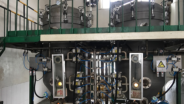 隨著白土混合液過濾量的增加,濾餅層越來越厚,過濾阻力增加,罐內壓力升高,當看到過濾機上部壓力表顯示為0.4Mpa時,停止向過濾機罐內輸送白土混合液,開啟空壓機,通過管道經溢流口向過濾機罐內輸入空氣,在空氣壓力的作用下,濾餅中的油被逐漸壓出,經管道回到脫色鍋或攪拌罐,約30分鐘以后,濾餅被壓干,停止向過濾機內輸入空氣,當看到過濾機上部壓力表顯示為0時,打開蝶閥,啟動振動體,開始排渣,當渣排凈時,關閉蝶閥及所有閥門,開始下一輪過濾。
