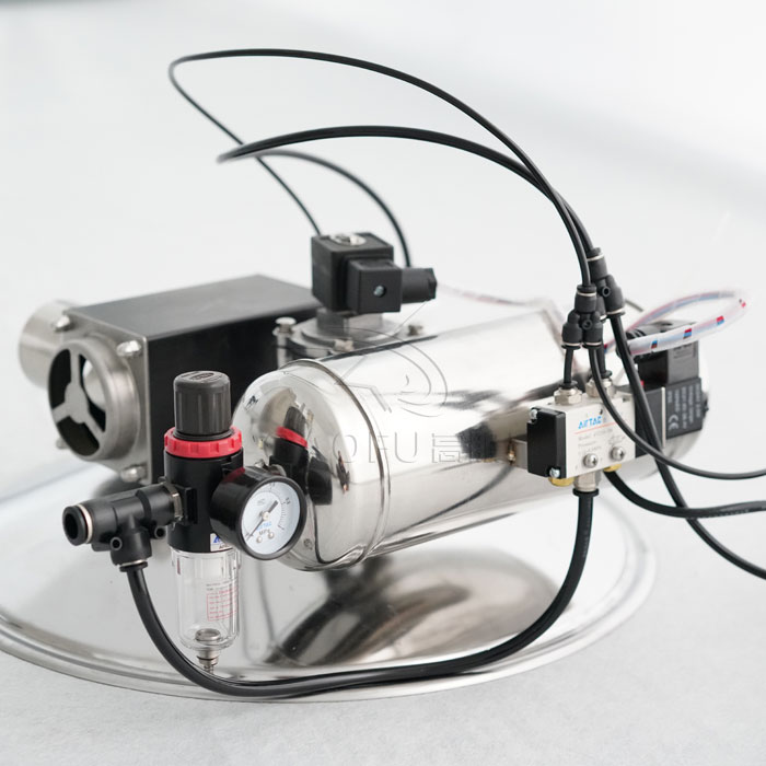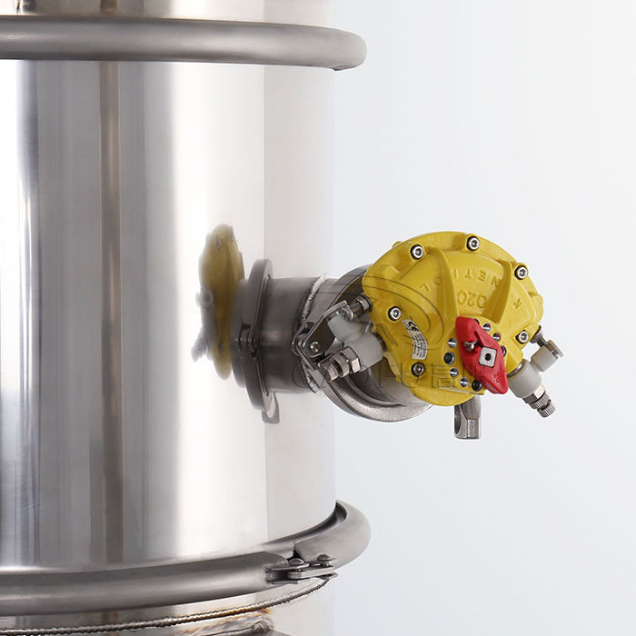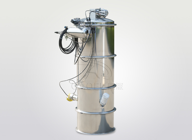 GFZK 真空上料機中裝有壓縮空氣反吹裝置,每次放料時,壓縮空氣脈沖反吹過濾器,把吸附于過濾器表面的粉末打落下來,使吸料能正常運行。